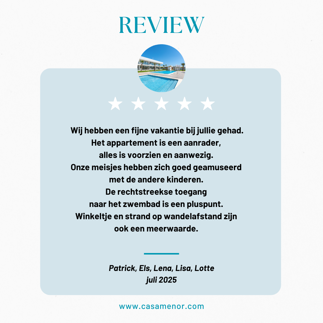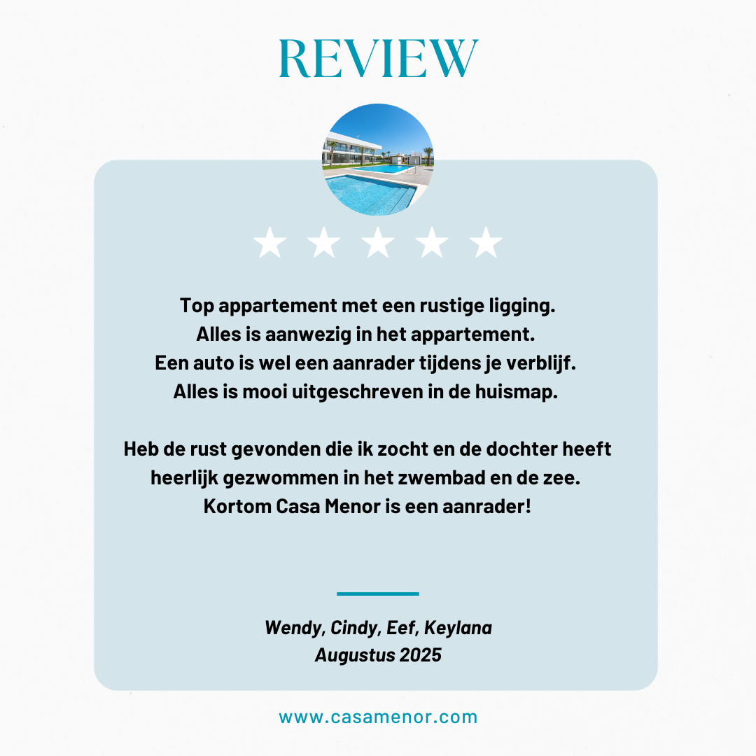 Ons appartement is gelegen op slechts 5 minuten lopen van de prachtige stranden van de Mar Menor.